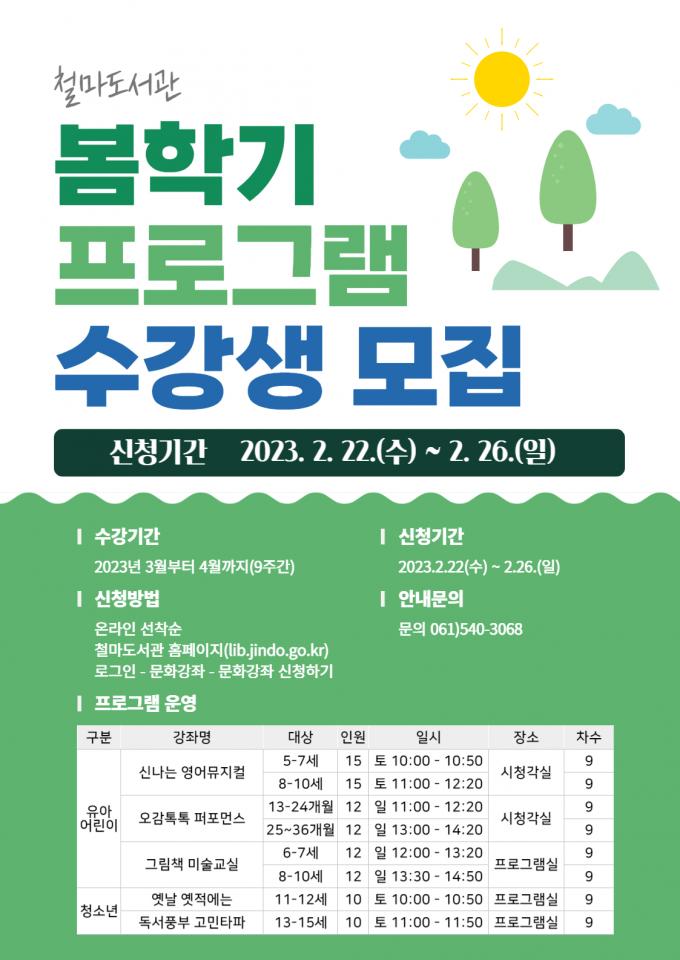 ▲철마도서관 봄학기 수강생 모집 포스터 [진도군 제공]