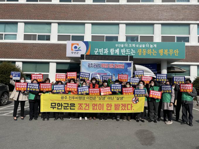 권숙희 삼향읍 새마을부녀회장은 "군 공항이 이전하면 군민의 소음피해와 기존의 민간공항이 가지고 있던 경제적 효과를 감소시킬 것이 분명하다"며 "이전이 무산될 때까지 결사반대 한다"고 결의를 다졌다.