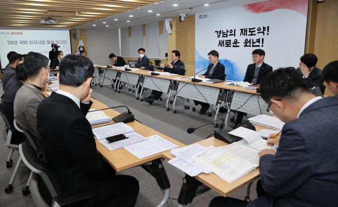 22일 오전 도청 도정회의실에서 열린 2024년도 국비 신규사업 발굴 보고회에서, △항공우주·원전·방산 등 미래산업 △서부경남 균형발전 등 도정의 역점사업을 추진하기 위해 발굴한 신규사업 보고와 함께 국비확보 전략이 논의됐다.