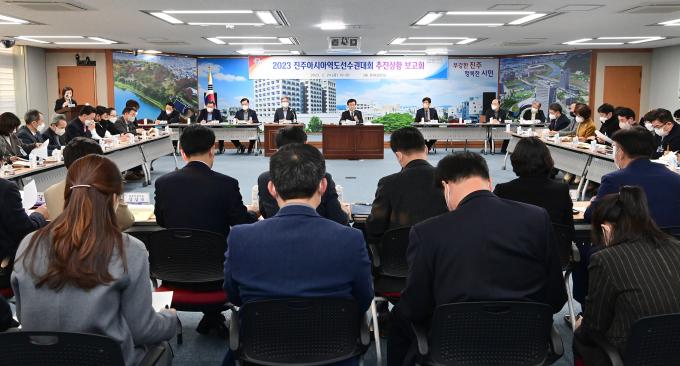 보고회를 주재한 조규일 시장은 "다양한 통역 인력을 확보해 선수 및 임원들에게 언제 어디서든 원활한 통역 서비스를 제공해야 한다"며 "각 나라의 문화를 보여줄 수 있는 다채로운 행사 준비에 최선을 다해 달라"고 당부했다.