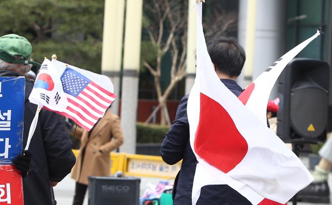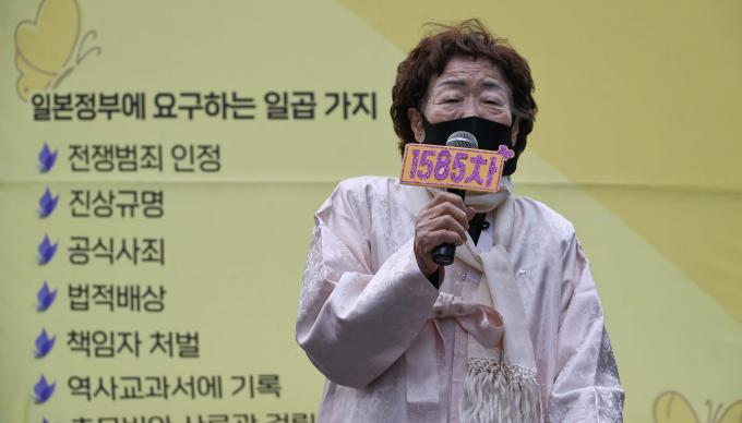 일본대사관 앞에서는 1585차 수요시위가 열렸다. 보수단체들의 방해로 소녀상 인근에서 열린 수요시위에는 이용수 할머니가 참석해 여전히 해결되지 않고 있는 일본의 공식사죄와 법적배상을 요구했다. 수요시위 집회장 주변에서는 보수단체 회원들이 성조기와 함께 일장기까지 흔들어 행인 눈살을 찌푸리게 만들기도 했다.
