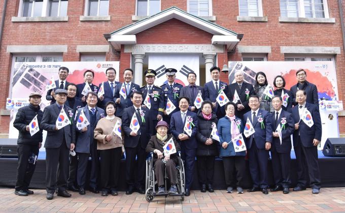 광주 수피아여자중학교에서 열린 이날 기념식은 3·1운동 경과보고, 독립선언서 낭독, 기념공연, 독립유공자와 나랑사랑유공자 표창, 만세삼창 순으로 진행됐다.