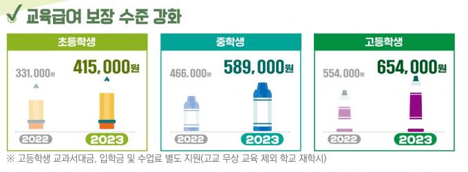 올해 교육활동지원비는 지난해 대비 평균 23.3% 인상됐다. 초등학생에게 41만5000원, 중학생에게 58만9000원, 고등학생에게 65만4000원을 각각 지원한다.