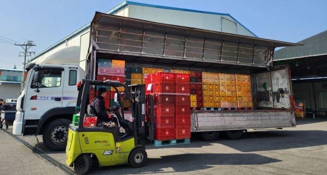 밀양물산주식회사(대표이사 배용호)는 지난 6, 7일 이틀간 판매에 애로를 겪고 있는 비품사과(얼음골사과) 23톤을 농가로부터 수매했다.