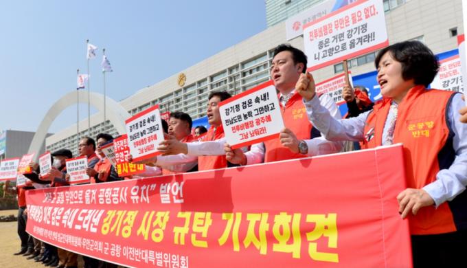 광주 전투비행장 무안이전반대 범군민대책위원회는 10일 오후 2시 광주시청 앞에서 기자회견을 열고 "강 시장은 무안군민에게 즉각 사과하라"고 촉구했다.