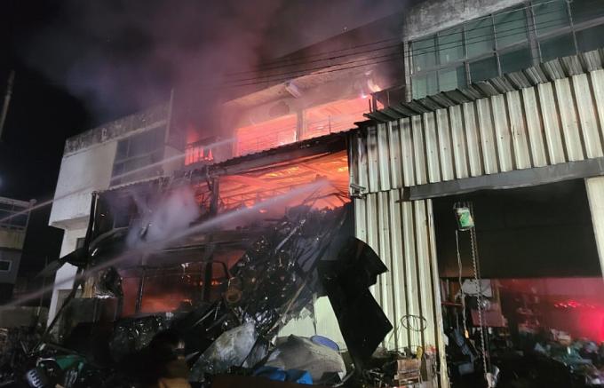 ▲ 11일 0시 11분께 통영시 정량동 선박수리 부품 공장에서 발생한 화재 현장 [경남소방본부 제공]