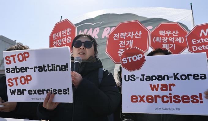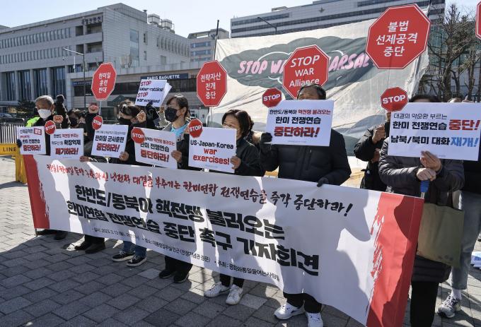 기자회견을 주최한 평화와통일을여는사람들은 "13일부터 시작된 한미연합 전쟁연습(자유의 방패·Freedom Shield·FS)은 이전과 달리 방어·격퇴단계를 생략하고 반격작전, 북한군 무력화와 북한 점령 후 안정화 작전, 북한 지도부 제거를 위한 참수작전, 대규모 상륙훈련 등을 중심으로 전개된다"며 "공세적이고 도발적 성격이 한층 강화된 형태로 실시되는 것"이라고 했다.