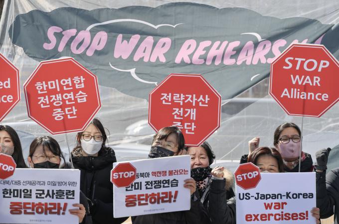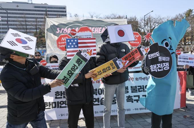 평통사는 또 "윤석열 정부가 한미연합 전쟁연습을 강행하는 것은 국가와 민족의 생명과 자산을 담보로 한 한반도와 동북아에 핵전쟁 위기를 자초하는 것으로 한미연합 전쟁연습을 중단하고 확장억제 정책을 즉각 폐기하라"고 정부에 요구했다.