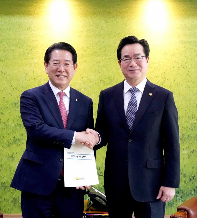 이밖에도 △농산업 빅데이터센터 건립 △국제 유기농식품 수출 플랫폼 구축 △향토음식진흥센터 설치 △K-김치산업 클러스터 △농식품기후변화대응센터 사업비 증액 등 내년도 중점 국고사업 예산 반영을 부탁했다.
