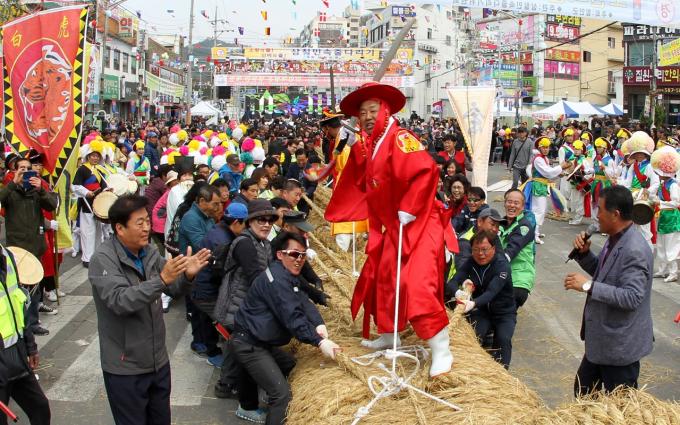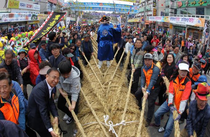 본격적인 줄다리기 행사는 오후 12시부터 윗줄(청룡대장 박원근) 아랫줄(백호대장 왕차근)로 나눠3000여 명이 참여해 3전2승제 대항전이 펼쳐질 예정이다.