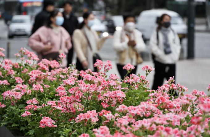 아직 까지는 두터운 겨울옷을 입은 시민들이 대부분이지만 계절의 변화를 알리는 꽃 소식은 더디지만 우리곁에 찾아오고 있다.