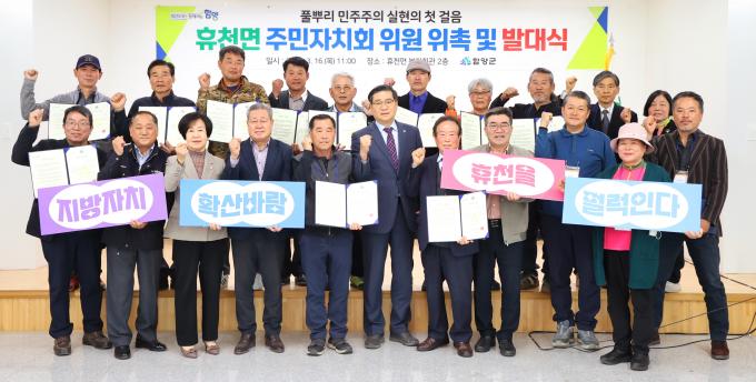군에 따르면 이날 주민자치회 발대식에서는 휴천면 20명, 지곡면 20명, 백전면 15명 등이 위원으로 위촉됐다. 20일 열리는 행사에서는 서하면 15명, 병곡면 21명 등이 위촉될 예정이다.
