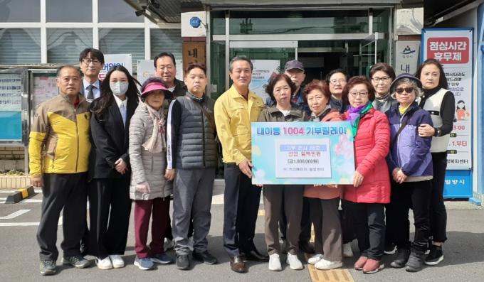이성기 대표는 "지난해에 이어 올해도 내이동 1004 기부릴레이에 동참하기 위해 회원들이 조금씩 갹출했다"며 "앞으로도 우리 주변에 도움이 필요한 분들에게 더 많은 관심을 가지고 이웃사랑을 지속적으로 실천하겠다"고 말했다.