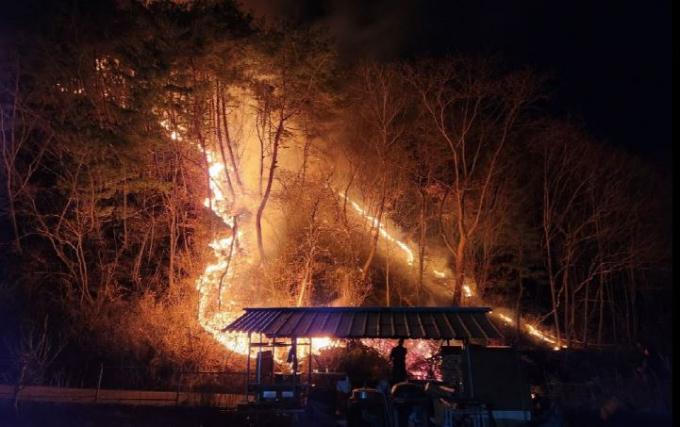 산림당국은 진화장비 20대, 인력 109명을 투입, 화재 발생 1시간 46분 만인 오후 8시 59분께 불길을 잡았다. 시설 피해나 인명피해는 없었다.