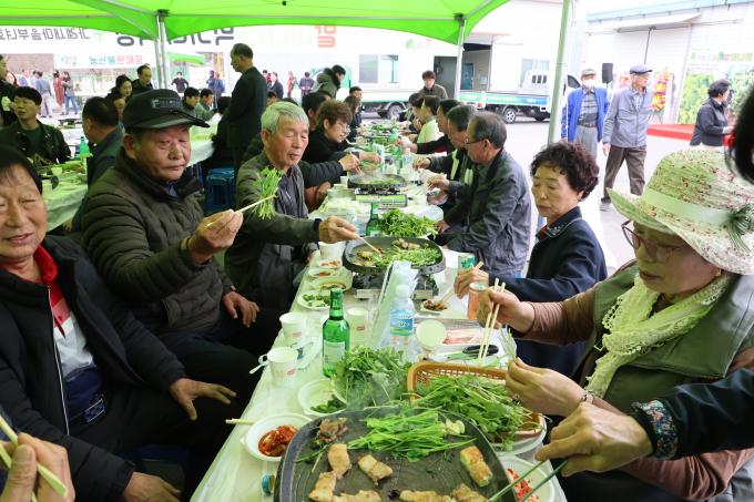 의령가례초등학교 앞 밭미나리 집화장에서는 19일까지 열리는 '의령가례밭미나리 축제'가 한창이다.