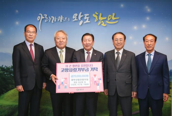 16일 군수실에서 열린 고향사랑기부금 기탁식에는 '재부산함안향우회' 이균태 회장을 비롯해 이근철·조창제 고문, 조율래 대외협력위원장이 고향사랑기부제 최고액인 500만 원을 각각 기탁하고 고향사랑기부제 기탁 행렬에 동참했다.