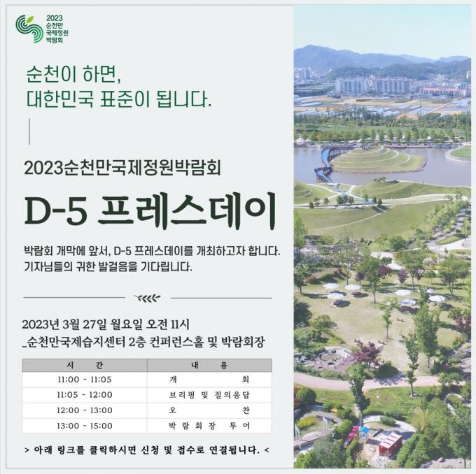 박람회조직위는 출입기자에게 온라인 초대장을 보내면서 오는 27일 오전 11시 순천만국제습지센터에 브리핑을 가진 뒤 낮 1시부터 두 시간 동안 박람회장 투어를 진행할 예정이라고 밝혔다.