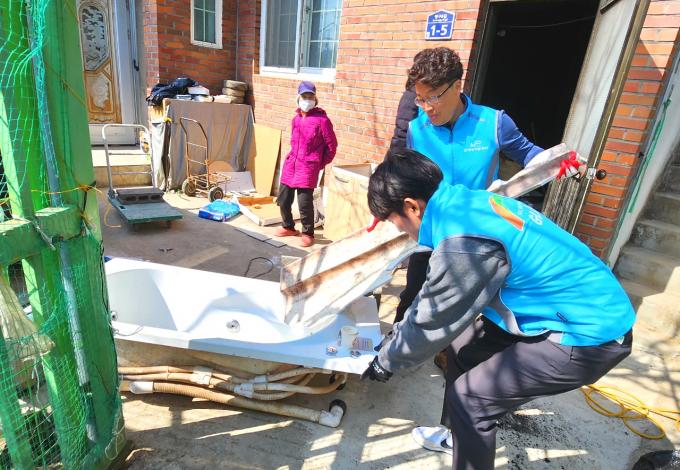 이날 농어촌공사 합천지사 임직원들은 장애로 거동이 불편한 거주인의 동선을 고려해 가구의 욕실 보수공사, 창호공사, 보일러 공사 등으로 쾌적한 주거환경을 마련해 줬다.
