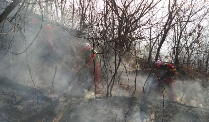 '산불 1단계'는 예상 피해 규모가 10~30ha, 예상 진화 3~8시간 정도일때 내려진다. 현재 현장에는 순간풍속 초당 7m의 바람이 불고 있다. 화선은 800m, 산불영향구역은 5ha 정도다.