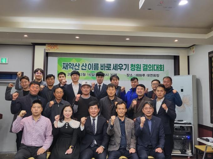 호국성지 표충사의 일주문 현판, 보물로 지정된 표충사 삼층석탑 개수비문(보물 제1944호) 등 여러 곳에서 원래의 산이름이 천황산이 아닌 재악산임을 알 수 있다는 게 추진위원회의 설명이다.