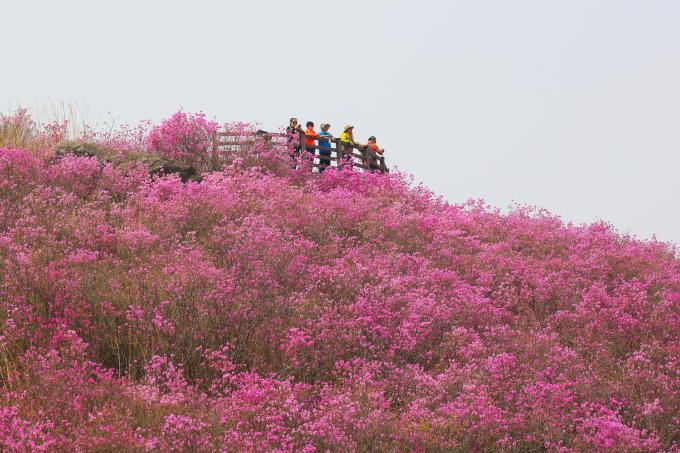 특히 정상에 오르면 진달래꽃 바다 너머로 밀양 시내가 한눈에 내려다보여 일상에 지친 마음이 확 트일 정도다.
