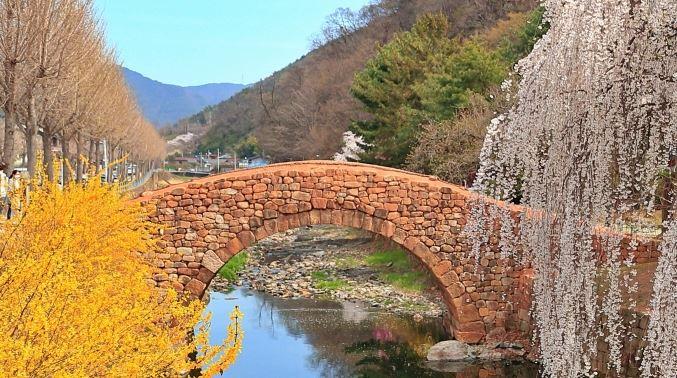 영산호국공원 입구에 위치한 국가지정문화재 중 보물로 지정된 아름다운 무지개다리인 '영산만년교' 또한 빠질 수 없다. 특히 3월 말경 수양벚꽃과 어우러지는 장면은 한 폭의 그림을 보는 듯하여 각종 SNS에 핫한 인생샷 명소로 많이 등장하고 있다.