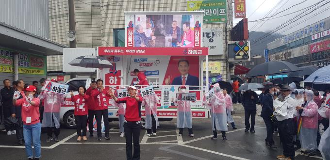 이날 출정식에서 하종근 후보는 '오뚝이 군수' '경제 군수' '유능한 군수' 등의 모토를 내세우며 "창녕의 미래를 위해 자신을 지지해 달라"고 호소했다.