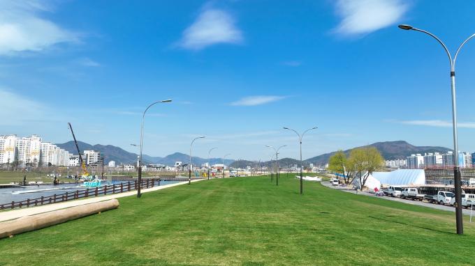 그린아일랜드는 기존의 아스팔트 도로를 없애고 푸른 잔디와 꽃밭이 가득한 정원 길로 변해 있었다. 일부 시민들의 반대를 협조로 이끌어 낸 노관규 시장의 노력이 돋보인 장소다.