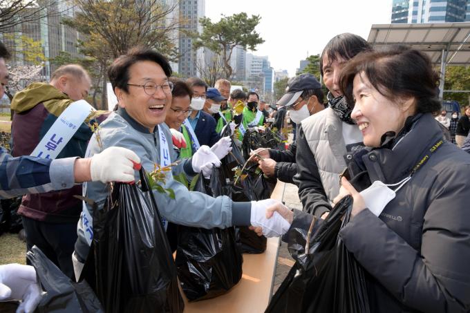 [포토뉴스] 강기정 광주광역시장, 시민에게 나무 나눠주기 행사