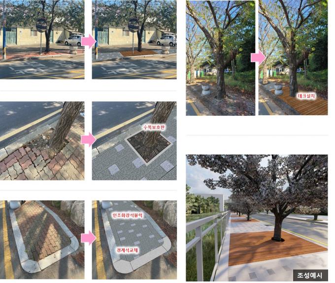 영암군에 따르면 구림마을에서 왕인박사유적지까지의 벚꽃길은 '아름다운 100리 벚꽃길'이라는 유명세가 무색할 만큼 나무 뿌리로 인해 노면이 고르지 않고 인도 보도블럭도 울퉁불퉁해 보행자들이 차도로 걷는 등 위험에 노출돼 있었다.