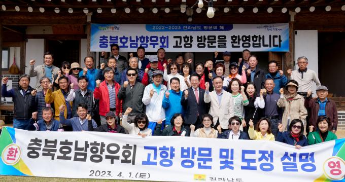 전라남도는 1일 함평 일원에서 '전라남도 방문의 해' 2년차를 맞아 고향을 방문한 충북호남향우회원에게 도정 설명회를 하고 고향사랑기부제 성공 안착 등 고향 발전을 위한 관심과 협조를 요청했다.