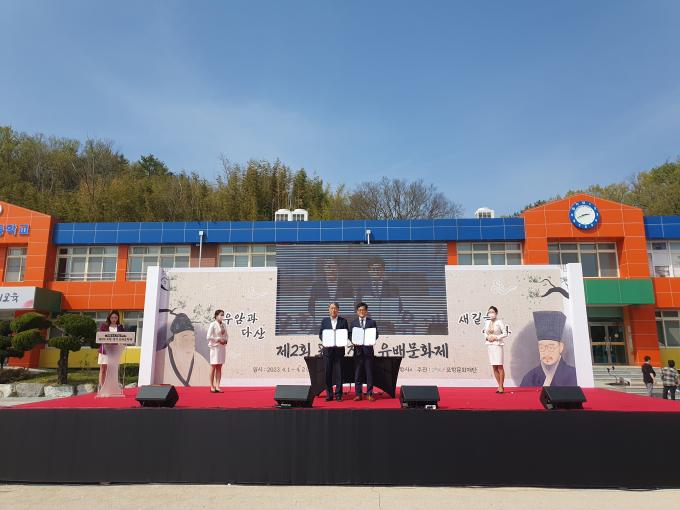 ▲지난 1일 강진군문화관광재단이 포항 장기 유배문화제에서 포항문화재단과 업무협약을 체결했다. [강진군 제공]