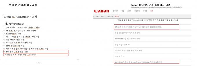 광주전남 지자체에 방송장비를 수십년 동안 납품하는 한 전문가는 H업체가 교육연구정보원 총무과와 수의 계약한 J업체에 납품한 최종 설계안을 보고 "해당 규격서의 카메라 규격을 보면 5축 광학 손떨림 보정 지원과 회전형 4인치 터치스크린 LCD모니터의 경우 캐논의 XF-705모델만 있는 특징이다"고 밝혔다.