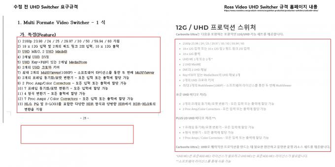 또 "품명은 UHD ENG카메라로 적혀 있지만 요구 규격은 이보다 사양이 낮은 FHD카메라로 적혀 있어 방송의 기본적인 카메라부터 앞뒤가 맞지 않는 엉터리 규격서다"고 지적했다.