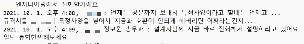 당시 임기제공무원은 H업체의 설계안에 특정 사양이 많다는 내용을 총무과 계약 담당공무원에게 알린 것으로 카카오톡 메신저에 고스란히 저장돼 있다.