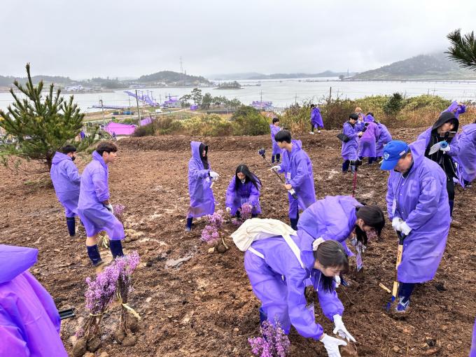 이날 식목행사는 '인(in) 퍼플섬 나무심어보라'를 주제로 신안군이 지난달 아프리카TV와 체결한 '신안군 축제 온라인 홍보 업무협약'의 하나로 마련됐다.