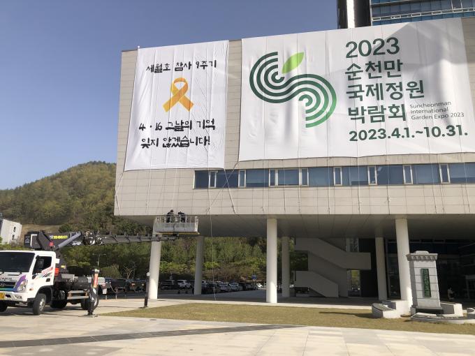 [포토뉴스] 전남도, 세월호 참사 9주기 추모 대형 현수막 게시