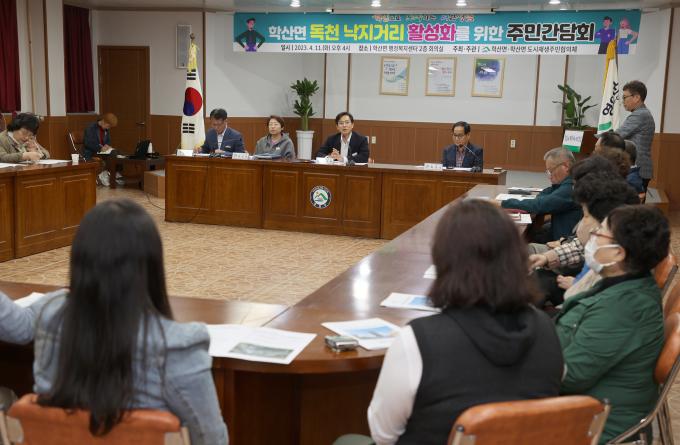 간담회에서는 지역주민과 상인의 갈등을 유발하고 있는 구조물 철거에 관한 사전 여론조사 결과를 발표하고 독천 낙지거리와 학산면 소재지 활성화 방안에 대한 다양한 의견이 오고갔다.