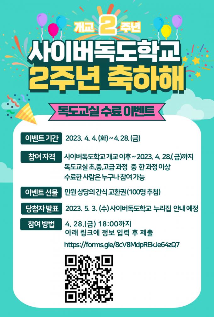 독도교실 수료자는 사이버독도학교 누리집 팝업을 통해 제공된 링크에 개인정보를 입력해 이벤트에 응모할 수 있으며 이들 중 추첨을 통해 100명에게 1만 원 상당의 모바일 상품권을 제공할 예정이다.