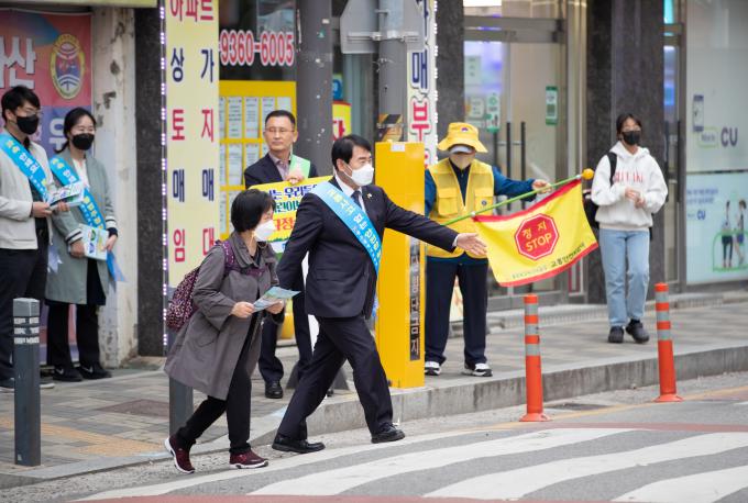 이 교육감은 등교하는 주월초 학생에게 교통안전 홍보 물품을 나눠주며 학생들의 교통안전에 대한 관심도를 높였다. 각종 팻말과 현수막을 활용해 어린이보호구역을 이동하는 운전자들에게 안전한 운행을 당부했다.