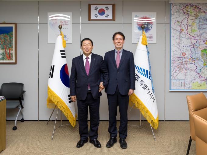 최민호 세종시장은 14일 집무실에서 유민봉 시도지사협의회 사무총장을 만나 시도지사협의회의 주사무소 세종 이전이 원활하게 진행될 수 있도록 사무공간 마련 등 다양한 행정지원에 나설 방침이다.
