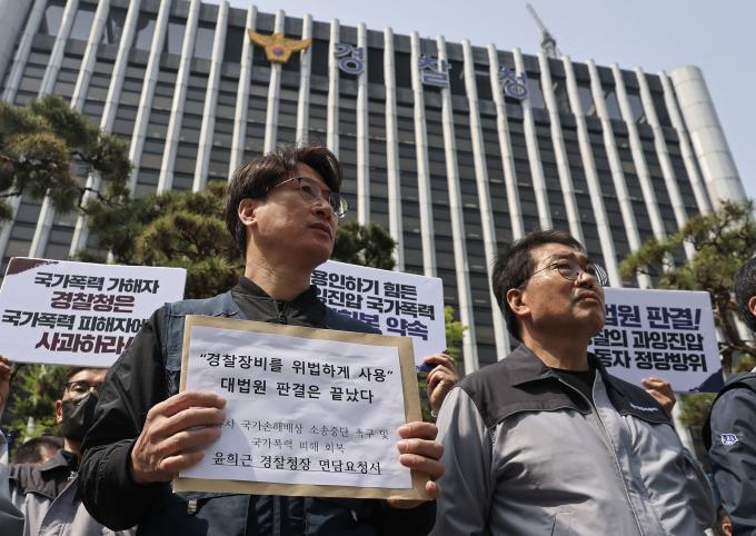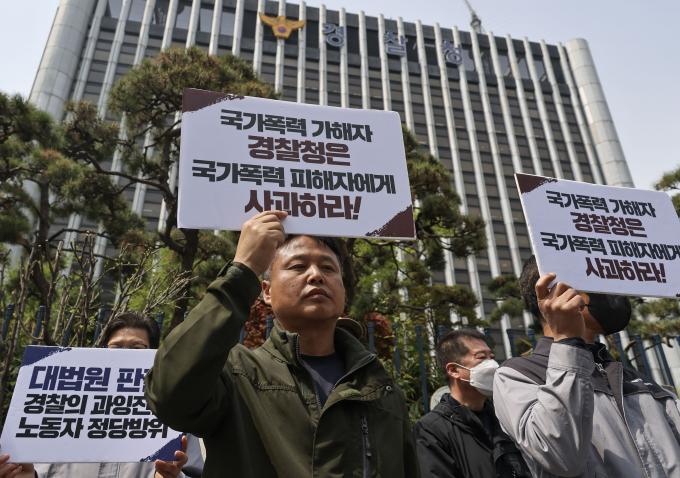 이어 "경찰청이 '대법원 판결을 지켜보겠다'는 입장을 고수해온 결과 노동자들은 '국가폭력 피해'를 사과받고도 4년을 더 법정에 피고로 서야 했다"며 "위법한 수단을 동원해 국가폭력을 저지르고, 소송을 멈추지 않는 대가를 오롯이 노동자들만 감내하고 있는 셈"이라고 목소리를 높였다.