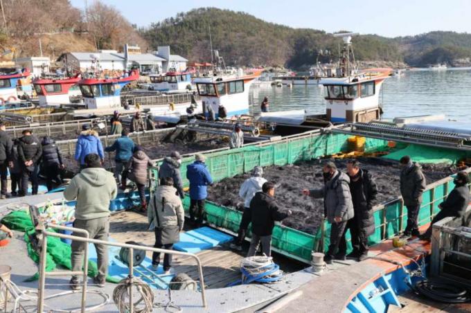 고흥군의 김 양식 면적은 1만211ha에 10만 2110책을 시설해 지난해 11월 첫 위판을 시작한 뒤 지난 14일에 물김 위판을 마무리했다.