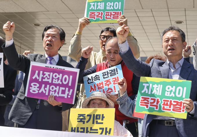 이와 관련해 강제동원 소송 대리인단과 지원단체는 "윤석열 정부가 제3자 변제 방식의 해법을 발표했지만 생존 당사자들은 제3자 변제 방식을 거부하고 있고, 대법원은 상당한 시간이 지났음에도 아직까지 판단을 내리지 않고 있어 신속한 팔결을 촉구하는 기자회견을 하게 되었다"고 밝혔다.
