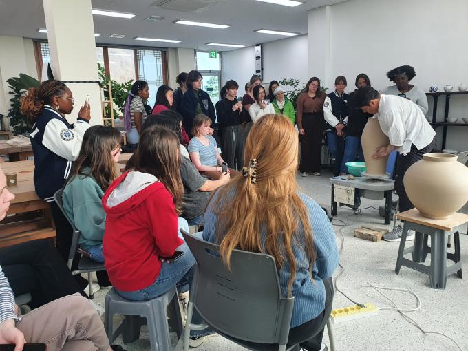 백산 김정옥 선생과 함께 가업을 계승하고 있는 8대 김경식 전수자는 외국인 유학생들에게 9대를 이어온 사기장 가문의 이야기와 한국의 전통 도자기 제작기법인 발물레로 그릇 빚기 그리고 전통 장작 가마를 통해 도자기를 소성하는 과정을 직접 소개하고 시연했다.