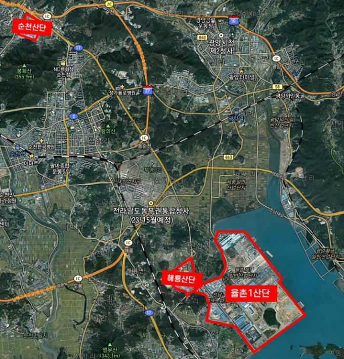 20일 순천시에 따르면 한화에어로스페이스(주) 우주 발사체 단 조립장 부지로 지난 14일 율촌1산단이 선정된 데 이어, 국토교통부·산업통상자원부 등 관계부처 합동으로 추진한 '거점산업단지 경쟁력 강화사업'에 광양만권경제자유구역 내 율촌1산단과 해룡산단, 서면 순천산단이 포함돼 잇따른 호재가 발생했다.