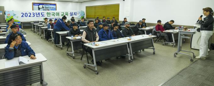 현대삼호중공업은 사내 협력사 외국인 근로자의 원활한 의사소통과 생활 편의를 지원하고 생산성 향상을 도모하기 위해 한국어 교실을 운영한다.