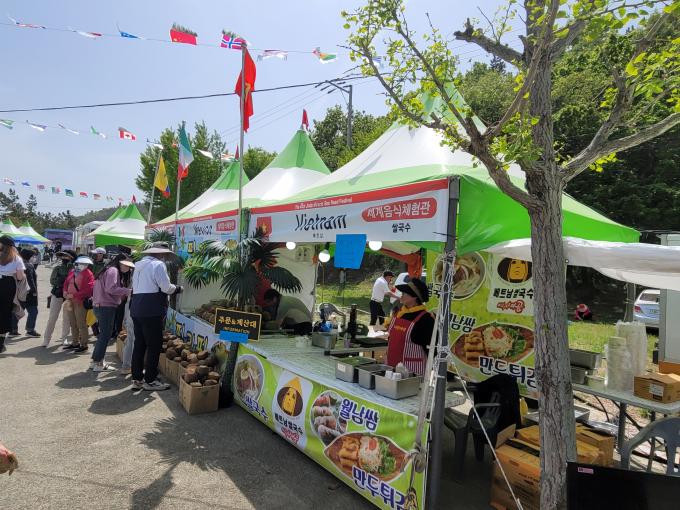 ▲22일 진도 신비의 바닷길 축제 현장에서 세계음식을 맛볼 수 있는 체험관 부스가 운영되고 있다. [진도군 제공]