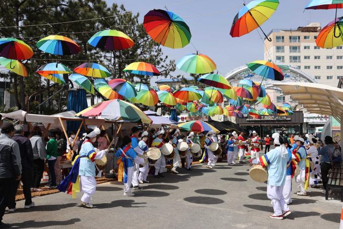 ▲ 지난 22일 강진 '마량놀토 수산시장'의 서막을 알리는 신명나는 풍물놀이가 펼쳐지고 있다. [강진군 제공]