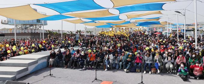 ▲ 지난 22일 강진 '마량놀토 수산시장' 개장식에 관광객들이 가득차 있다. [강진군 제공]